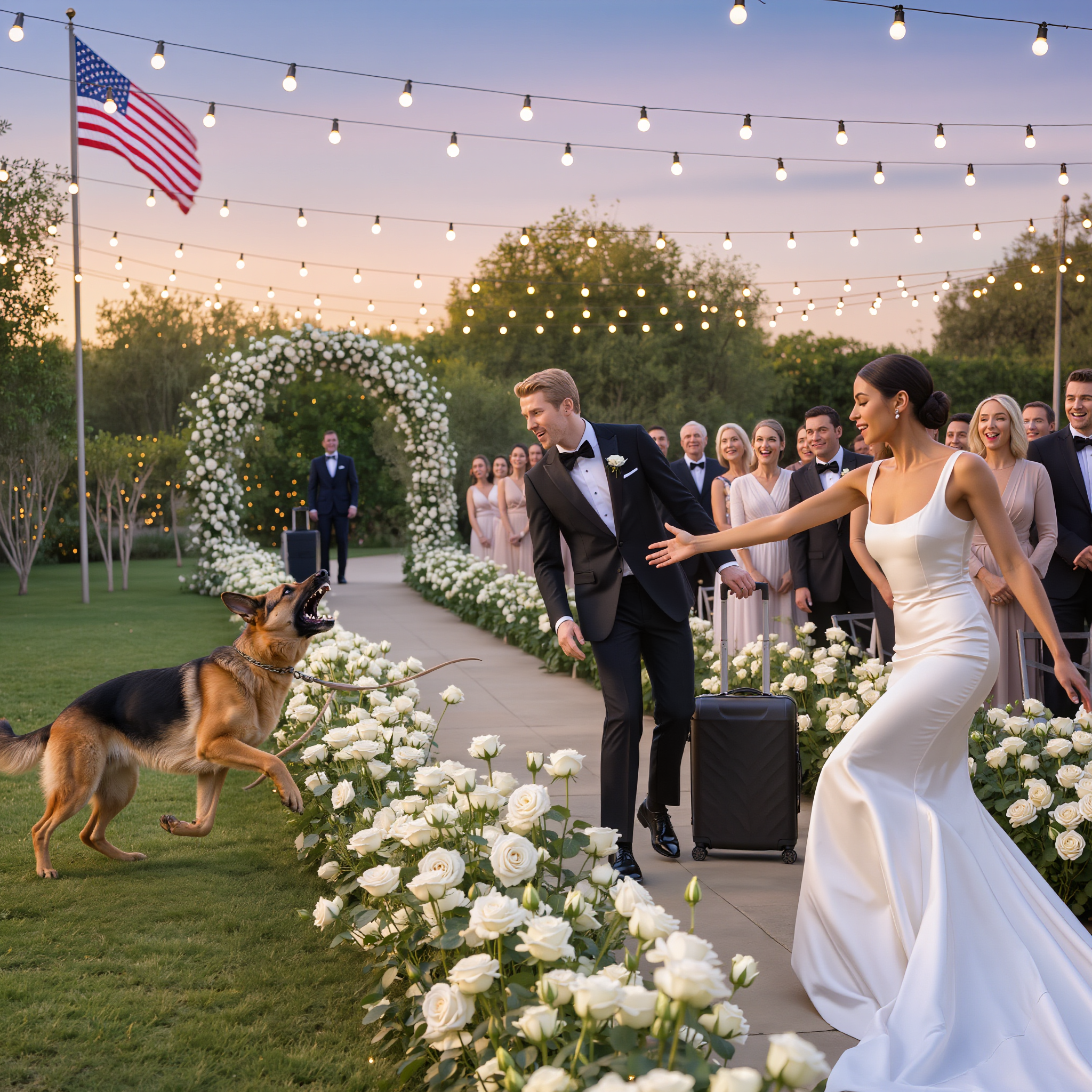 He came out of nowhere, a black-and-tan missile from the fringe of the tent where the florist’s assistant had tied him for “aesthetic reasons.” He hit the aisle at a full run, skidding on the slick runner, nails clicking, teeth bared in a way that every one of my trainer friends would tell you was not aggression, but conviction.