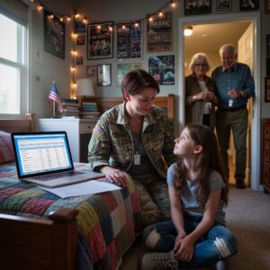 The next morning, I called the base legal assistance office from a coffee shop where the barista asked if I wanted room for cream and I said no like there wasn’t room for anything in me. The attorney on call, Harrington, spoke like a man who respects paperwork. He told me what words to use: “financial exploitation,” “dependent minor,” “designated funds.” He told me what not to do: “Do not threaten without process.” He told me what to gather: “Statements, photos, third-party corroboration.” Then I called Lieutenant Colonel Richards, my old CO, now a family lawyer who keeps a spare spine in her desk drawer for women who need one. She said, “Document, then decide,” and, “Remember, justice isn’t vengeance; it’s repair.”