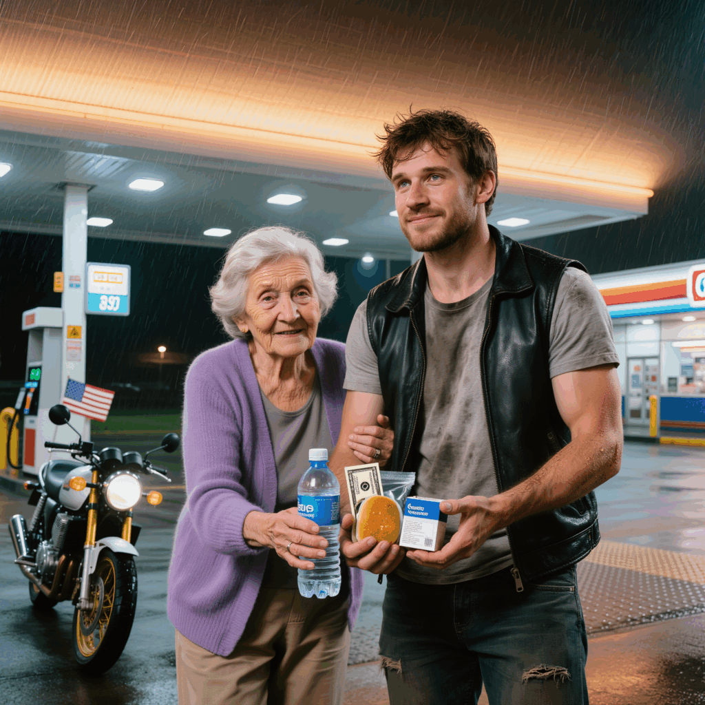 The evening rain thinned to mist over the convenience store lot, slicking the concrete and sharpening the neon. Marjorie Hayes—seventy‑six, lavender cardigan pulled close—counted the crumpled bill in her pocket. Ten dollars. Bread money. Five days until the pension.